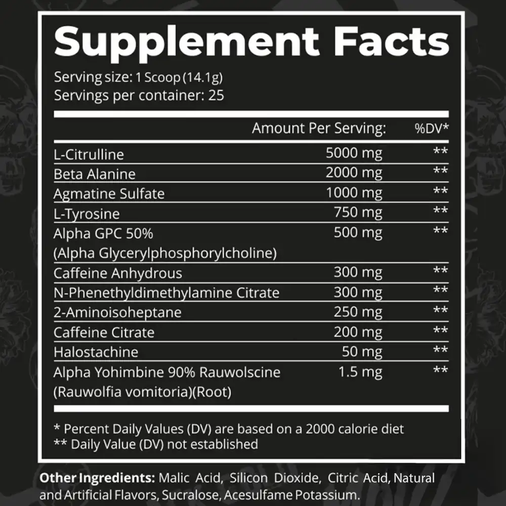 • Explosive Energy: Powered by a synergistic stimulant blend, it ensures unrelenting drive and intensity from start to finish.
