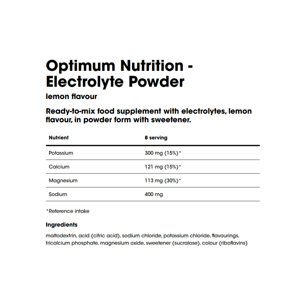 Optimum Nutrition Electrolyte Powder is a high-quality hydration solution designed for sports facilities, supplement retailers, gyms, and performance-driven organisations looking to supply their customers or athletes with a trusted electrolyte product. Formulated to replenish essential minerals lost through sweat, this fast-mixing powder helps maintain fluid balance, muscle function, and endurance across a wide range of settings—from high-intensity training environments to outdoor workforces.